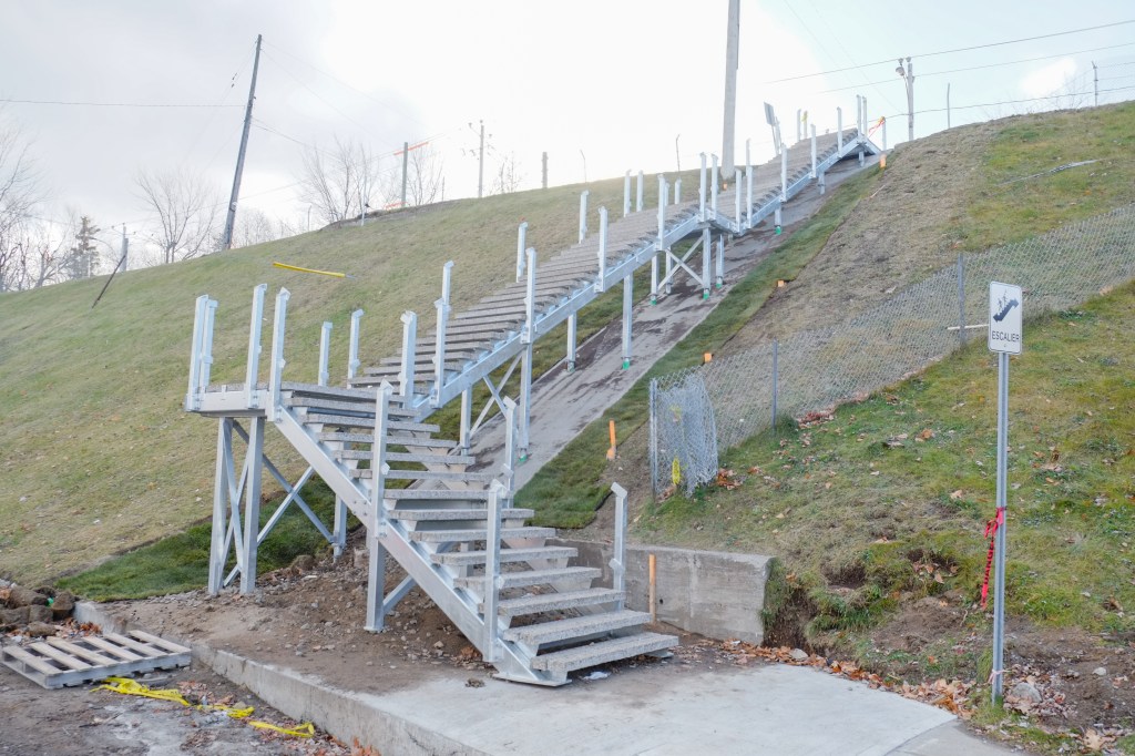 Helical piles can effectively be used as foundation to various external staircase types located on sand dunes, hills or other similar applications. The advantage of using helical piles for these applications is that the entire staircase structure including the helical piles can safely be removed when it needs to be decommissioned.
